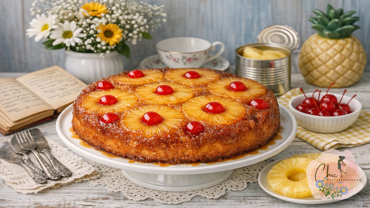 Una torta capace di trasformare un semplice dolce in un piccolo spettacolo teatrale, quella è la Pineapple Upside Down Cake, ovvero la torta rovesciata all’ananas. Una coreografia di anelli dorati, ciliegine rosso rubino e caramello lucente che, al momento del capovolgimento, strappa sempre un “oooh” collettivo. E non stupisce che abbia una giornata tutta per sé: il 20 aprile, infatti, il mondo celebra questo capolavoro rétro che profuma di burro, zucchero e ricordi d’altri tempi.